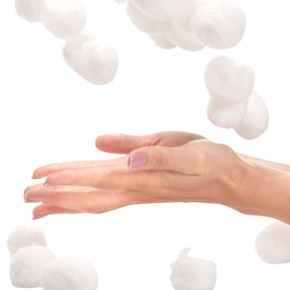 O algodão em bolas brancas COTTONBABY é feito de 100% fibras de algodão, proporcionando uma textura macia e altamente absorvente. Seu formato arredondado facilita o manuseio, tornando-o ideal para diferentes usos, como higiene pessoal, cuidados com a pele e aplicação de cosméticos