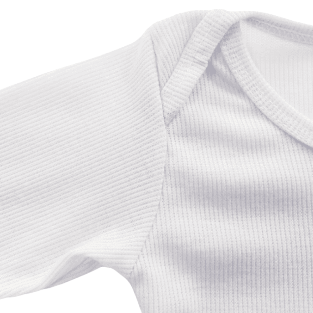 - Os botões de pressão e a gola envelope facilitam a passagem da cabeça do bebê